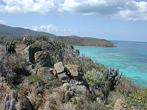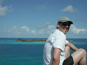 A few minutes of hiking brought us to some very large boulders at the top of the island. The view was breathtaking. Blue green sea with coral reefs everywhere. We stayed for over an hour looking around at every angle. |